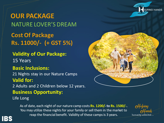 As of date, each night of our nature camp costs Rs. 1200/- to Rs. 1500/-. You may utilize these nights for your family or sell them in the market to reap the financial benefit. Validity of these camps is 3 years.
